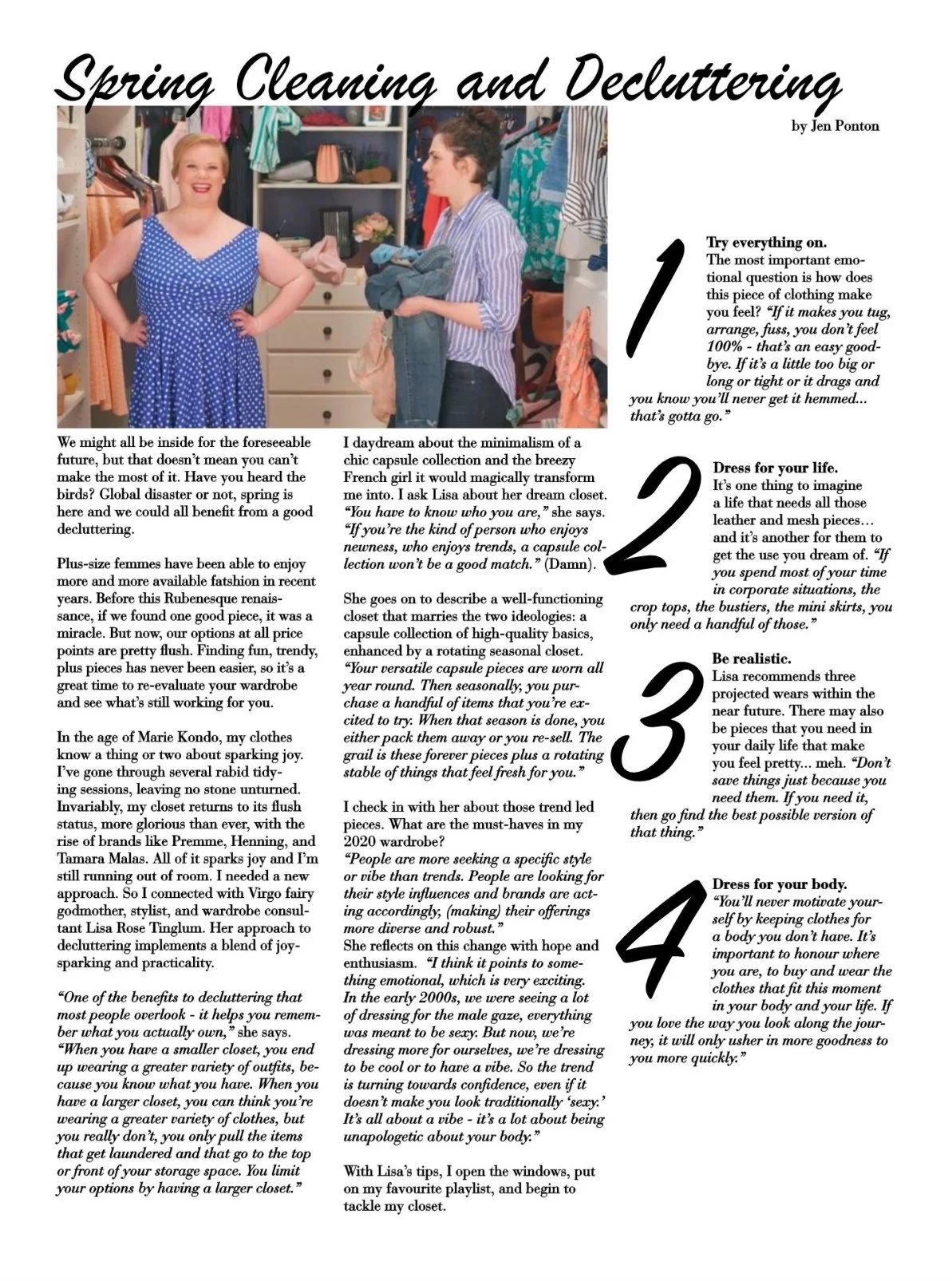 Lisa Tinglum was interviewed by Jen Ponton for Issue 27 on tips for keeping a healthy, balanced closet.